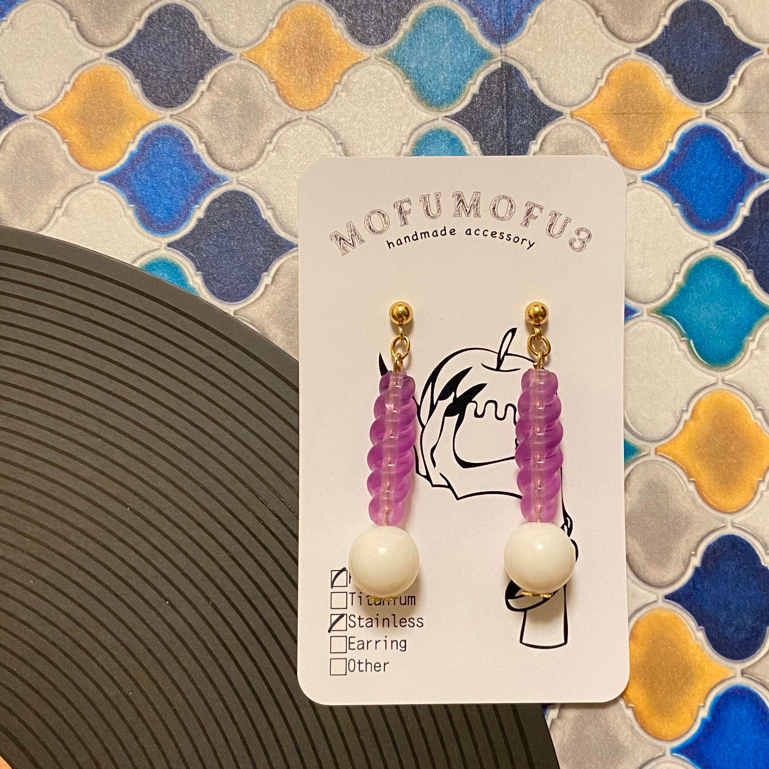 シンプルに樹脂のビーズを組み合わせた可愛らしいピアス♡