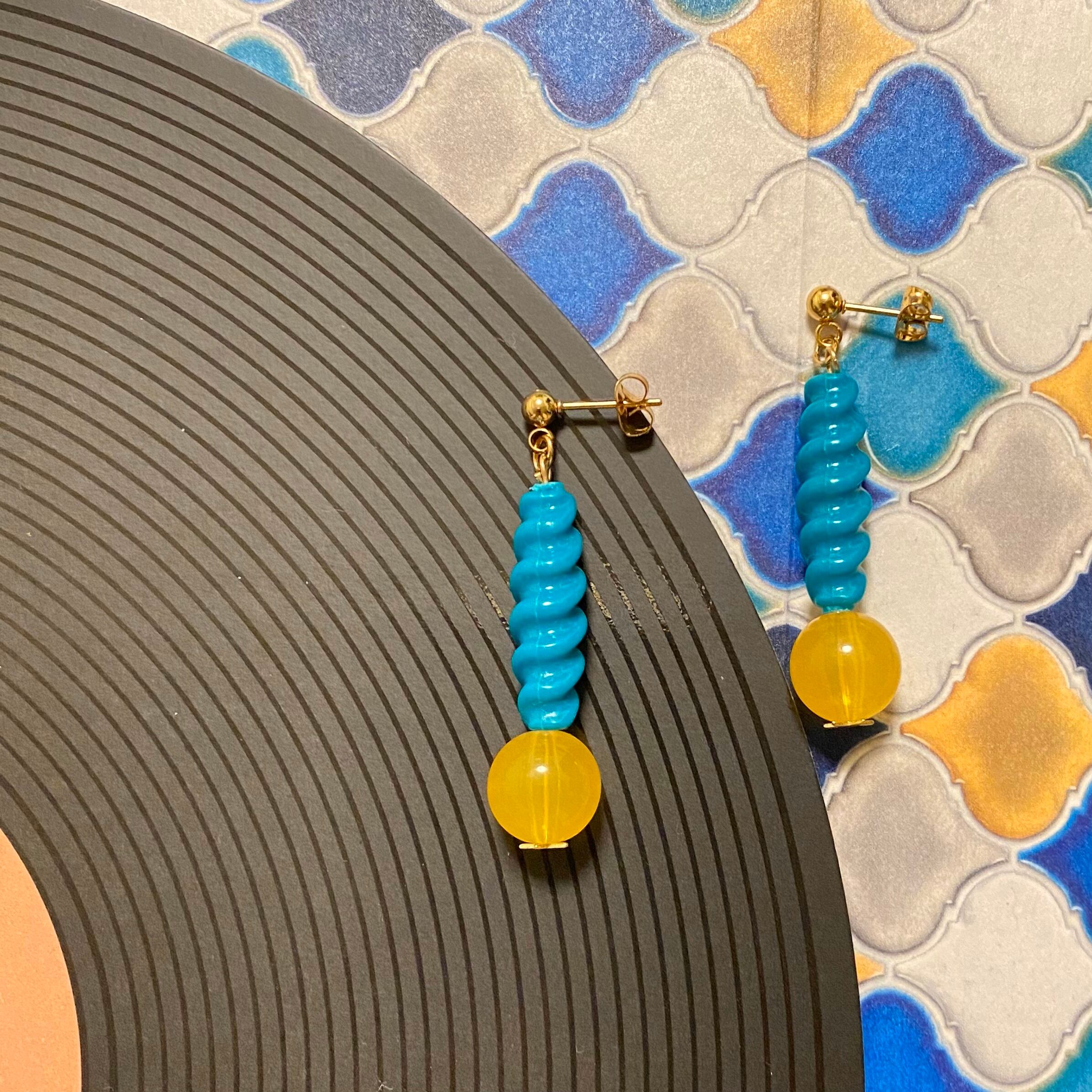 シンプルに樹脂のビーズを組み合わせた可愛らしいピアス♡